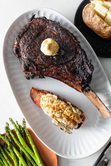 Наш стейк рибай с обратным обжариванием получается нежным и копченым внутри с идеально хрустящей корочкой. Просто приправленный солью и перцем, он готовится на пеллетном гриле …